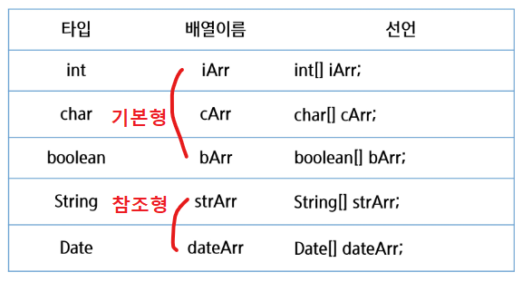 - 배열은 기본형과 참조형 모두 만들 수 있다.