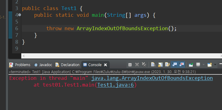 ⇒ 즉, 예외 객체를 던질 때 발생