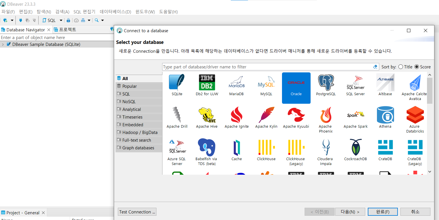 username 은 system, password 는 oracle 입력해주면 접속된다.